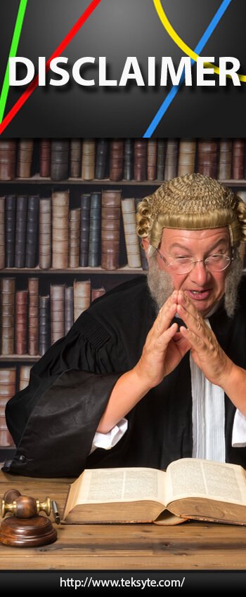As your access and use of this Site (or the Teksyte Ltd.site that is linked to this disclaimer) automatically binds you to the following terms and conditions, please read them carefully. As used herein, the term “you” and “your” shall mean the user of this Site.